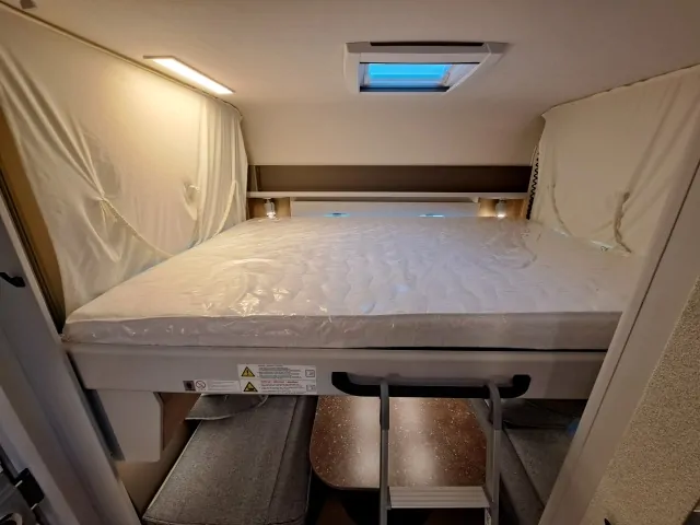 | Bettsystem | Alkovenbett/Hubbett, festes Doppelbett längs, feste Einzelbetten längs, umbaubare Liegefläche |