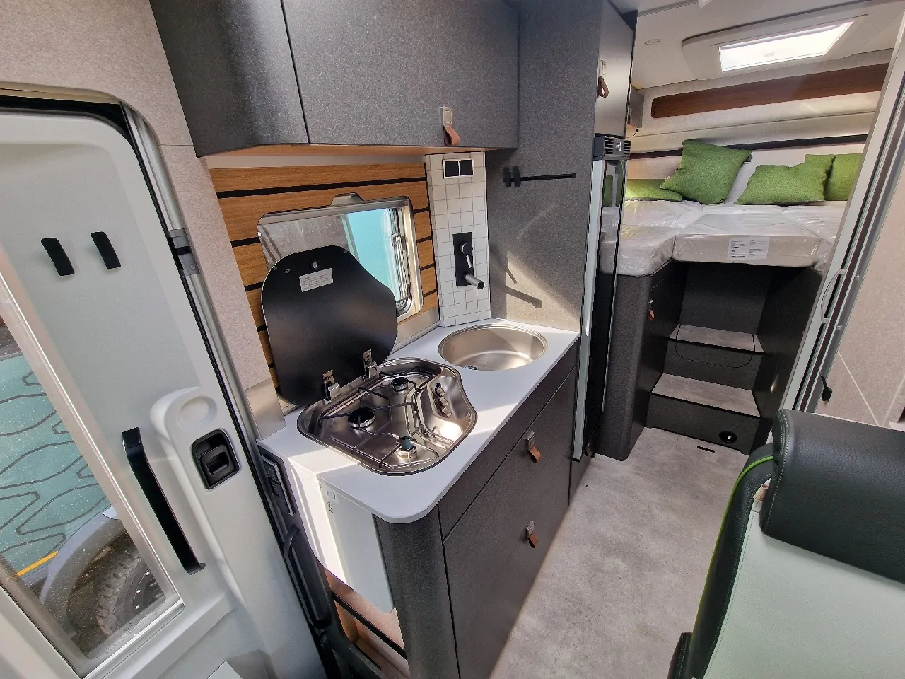 | Bettsystem | festes Doppelbett längs, umbaubare Liegefläche |